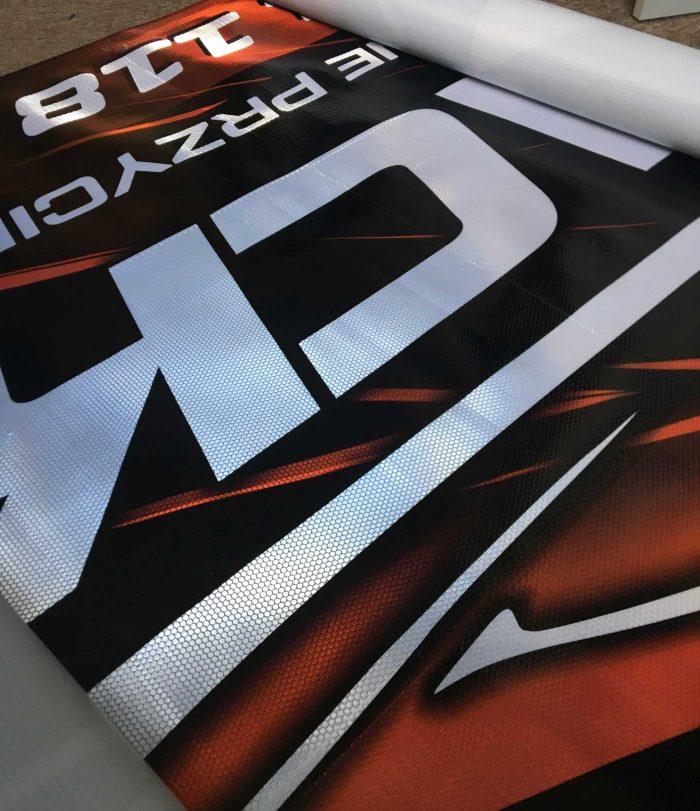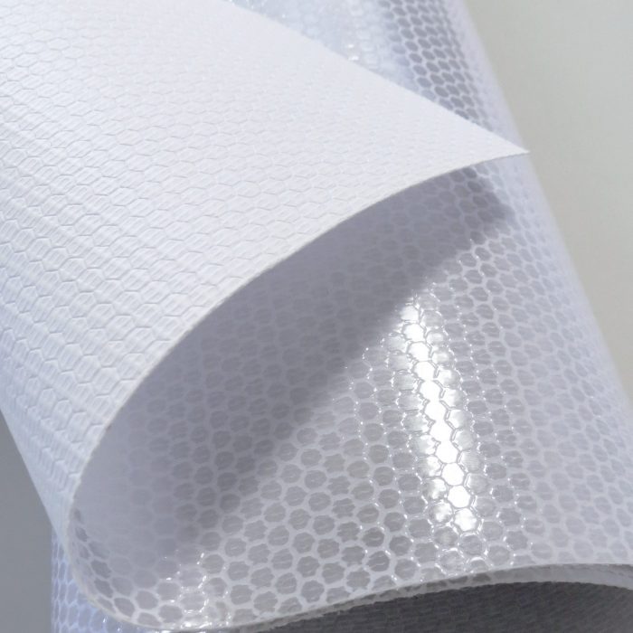 Baner odblaskowy to mocny i elastyczny, laminowany winyl z wierzchnią warstwą o strukturze plastra miodu.
